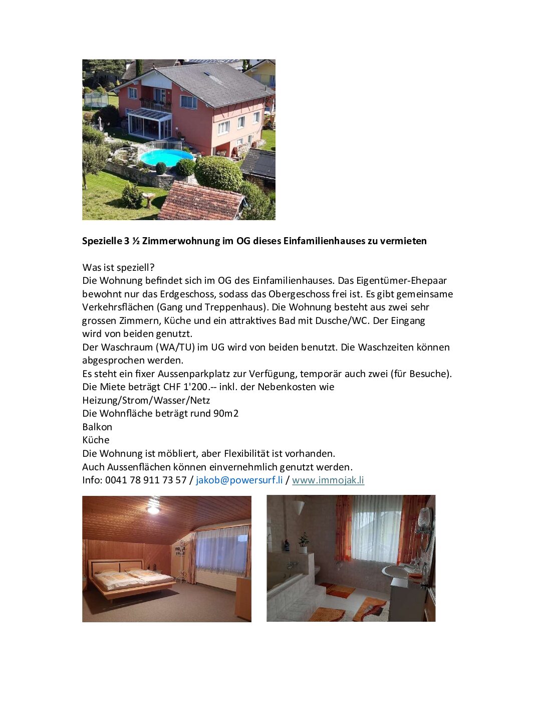 Miete CHF 1’200.– inkl. Nebenkosten (Heizung, Wasser, Strom, w‑Lan)